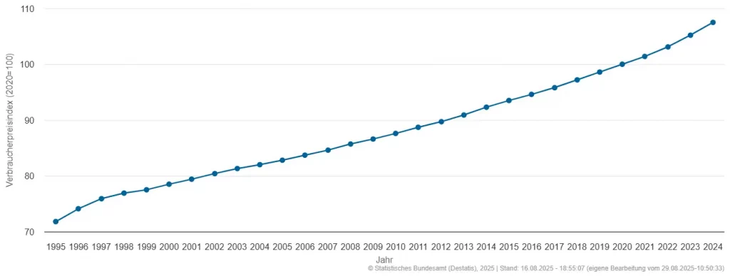 Auch die Mieten sind über die Jahre gestiegen. Die Abbildung zeigt die Preisentwicklung von Wohnungsmieten. Eisdielen mieten zwar kleinere Gewerbeflächen; die Entwicklung dürfte aber ähnlich sein.