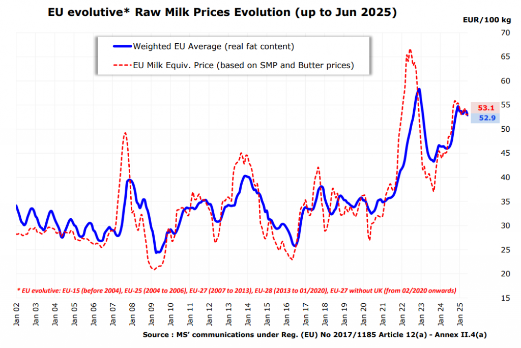 Rohmilch und Milchprodukte sind viele Jahre um einen gleichbleibenden Mittelwert geschwankt. Mit dem Überfall Russlands auf die Ukraine ist der Preis aus der langfristigen Seitwärtsbewegung ausgebrochen und nicht mehr zum alten „Normal“ zurückgekehrt.
